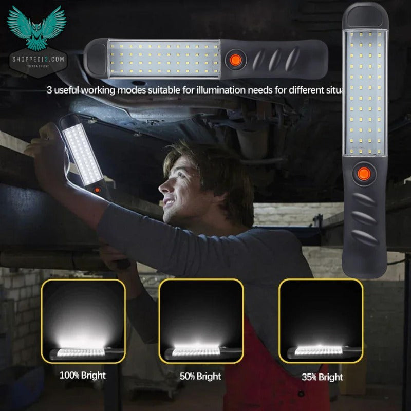 Luz DE TRABAJO recargable: equipada con puerto de carga USB, la luz de trabajo manos libres SMD utiliza energía móvil, cargador de coche y cable de alimentación del ordenador para una carga fácil y cómoda. Muy adecuado para casas, garajes, tiendas de automóviles, camping, terremotos y reparaciones de emergencia de averías de automóviles.