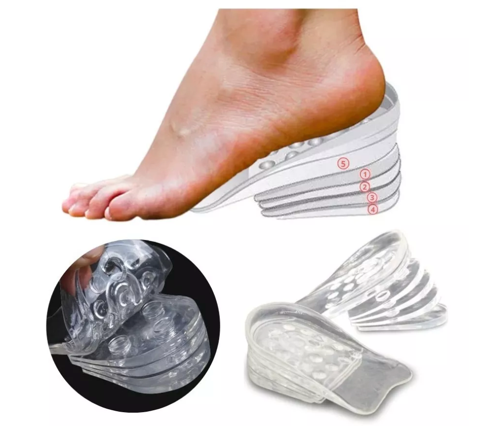 Las plantillas levanta estatura son inserciones para zapatos, hechas de materiales como silicona, polímeros o goma, diseñadas para aumentar la altura de una persona de forma discreta.